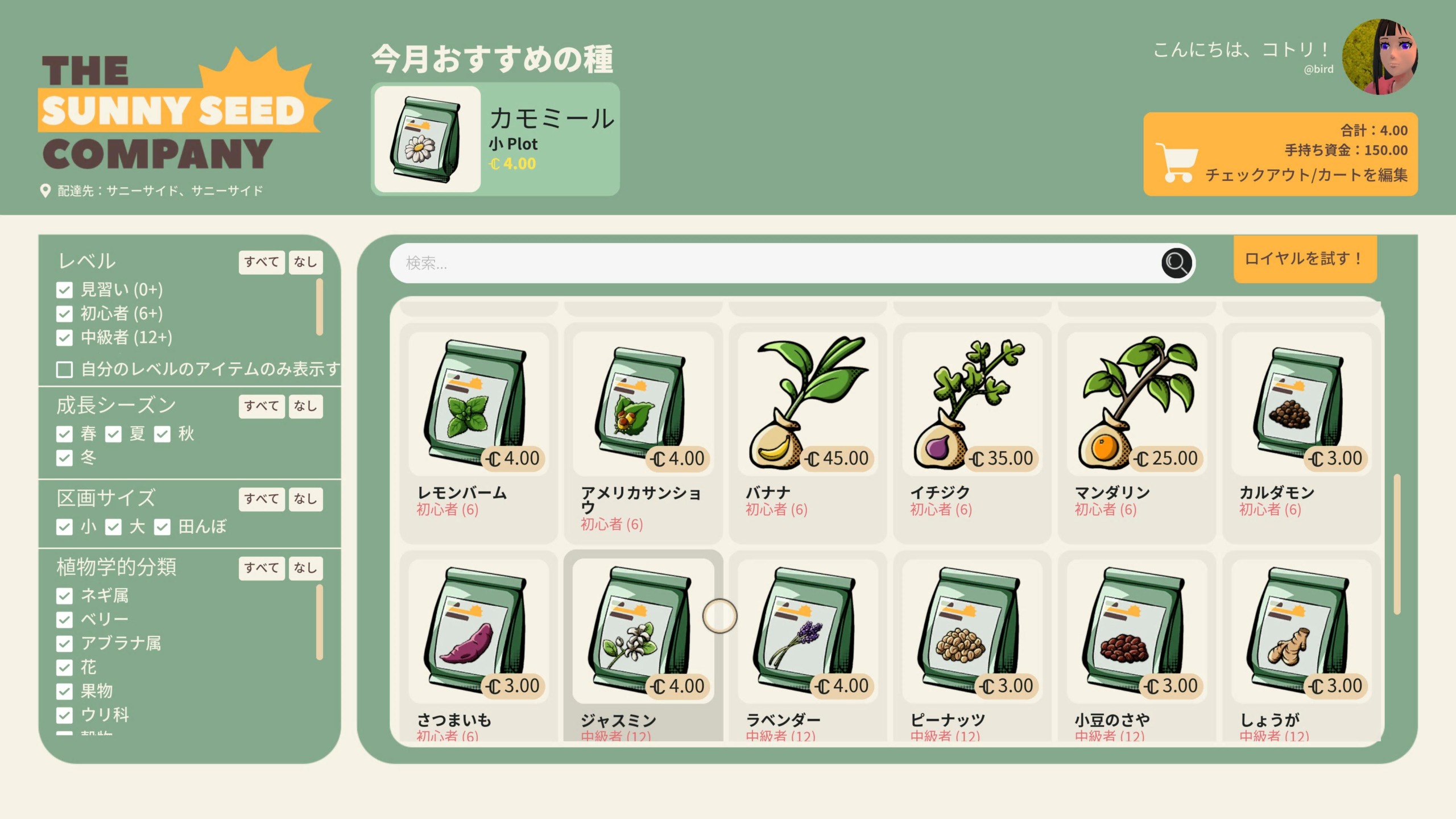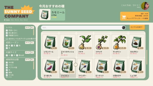翌朝、住人のキャサリンに教えてもらったオンラインショップ「サニーシード」をチェック。