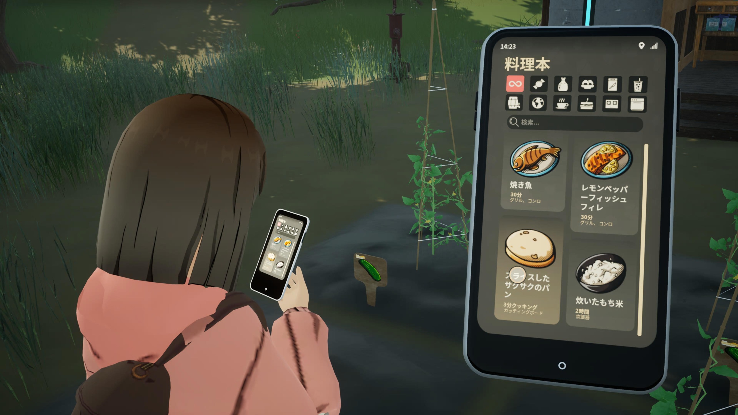 レストラン「ナカ」のシェフ「ヒナ」から料理のレッスンを受けた後、スマホで料理のレシピを確認できるようになりました。