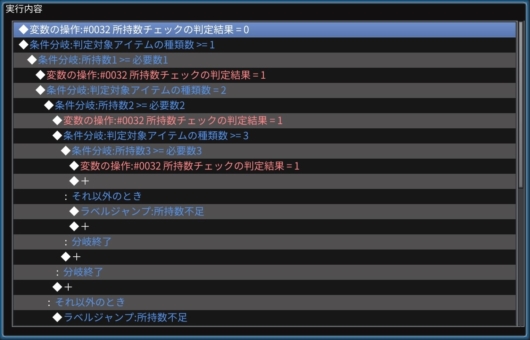 下記が作成したコモンイベント「所持数チェック」です。